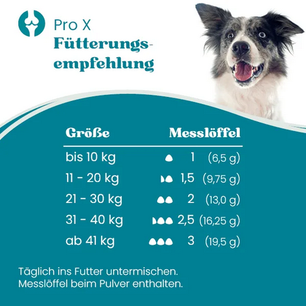 Viele Hunde reagieren empfindlich auf konventionelle tierische Proteine (z. B. Rind, Huhn oder Fisch). Insektenprotein wird als hypoallergene Alternative eingesetzt, da es vergleichsweise selten Auslöser von Futterunverträglichkeiten ist. Pro-X enthält ca. 54 % Protein und bietet damit eine konzentrierte Eiweißquelle, die vielseitig einsetzbar ist.
